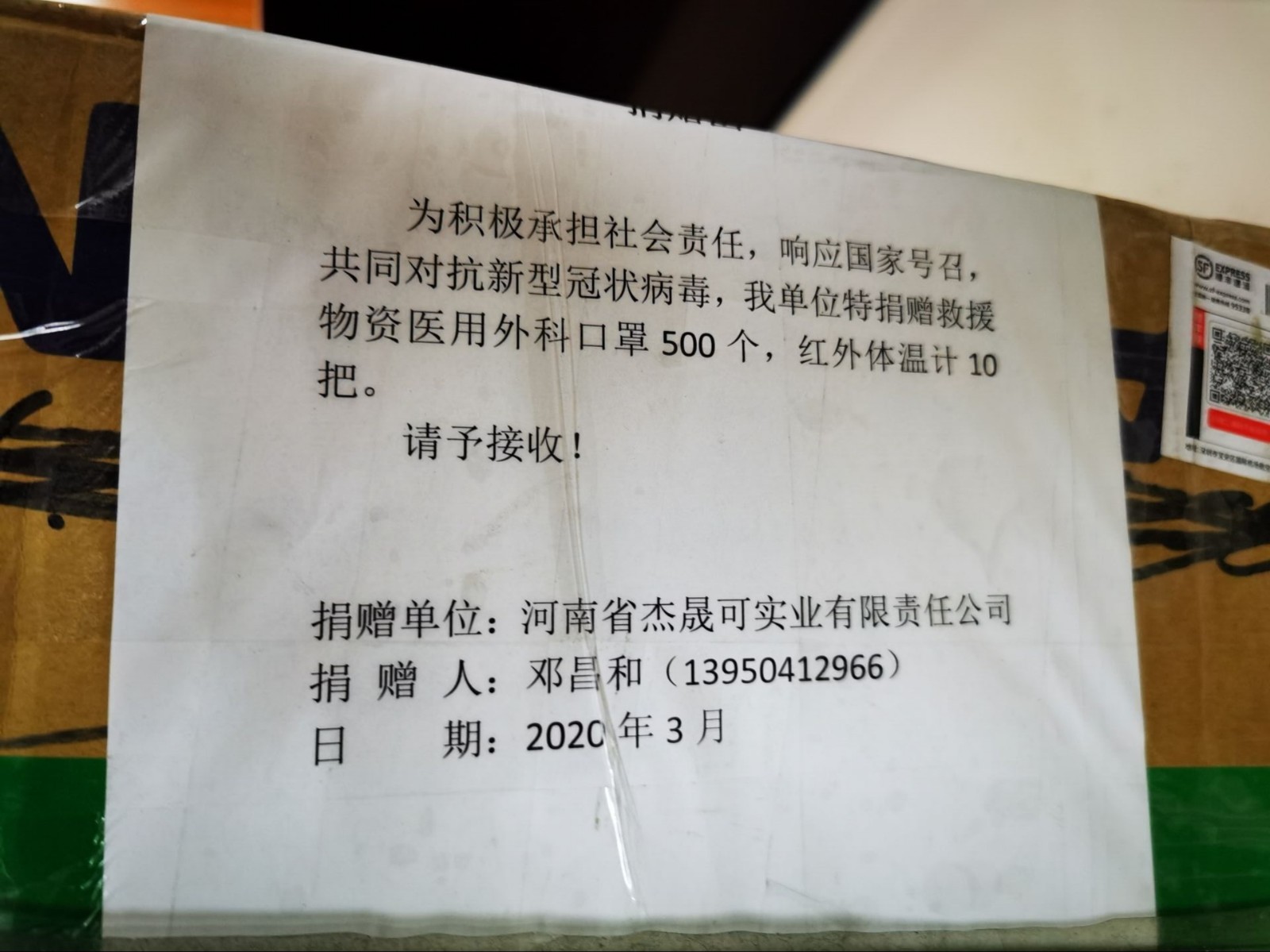 近日,省奧體中心收到中心租賃戶“河南省杰晟可實(shí)業(yè)有限公司”捐贈的一批新冠肺炎防疫物資(口罩500個,紅外體溫計10支),為中心對外開放準(zhǔn)備工作提供很大支持,在此我中心表示衷心感謝。