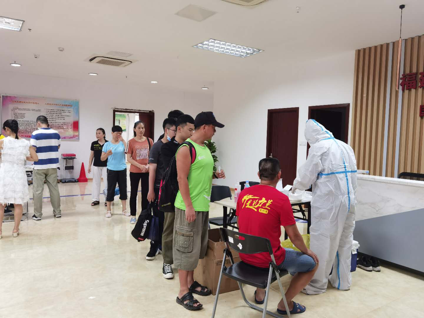 按照福建省應(yīng)對新冠肺炎疫情工作領(lǐng)導(dǎo)小組綜合協(xié)調(diào)組下發(fā)的《關(guān)于做好體育健身場所疫情常態(tài)化防控和安全有序開放工作的通知》文件要求,各開放體育健身場所必須組織工作人員開展核酸檢測,另根據(jù)《福建省應(yīng)對新冠肺炎疫情工作領(lǐng)導(dǎo)小組綜合協(xié)調(diào)組關(guān)于進一步加快推進新冠病毒核酸檢測實施方案的通知》文件精神中“做到應(yīng)檢盡檢”的要求,省奧體中心邀請省直機關(guān)醫(yī)院醫(yī)務(wù)人員于6月9日和7月1日分兩批,先后對一線服務(wù)人員及其他職工進行了核酸檢測(新型冠狀病毒核酸檢測)。為了防止人員聚集,全體職工分批進行采集,采集現(xiàn)場井然有序。我中心參加檢測人員共計339人,兩次檢測結(jié)果全部為陰性。