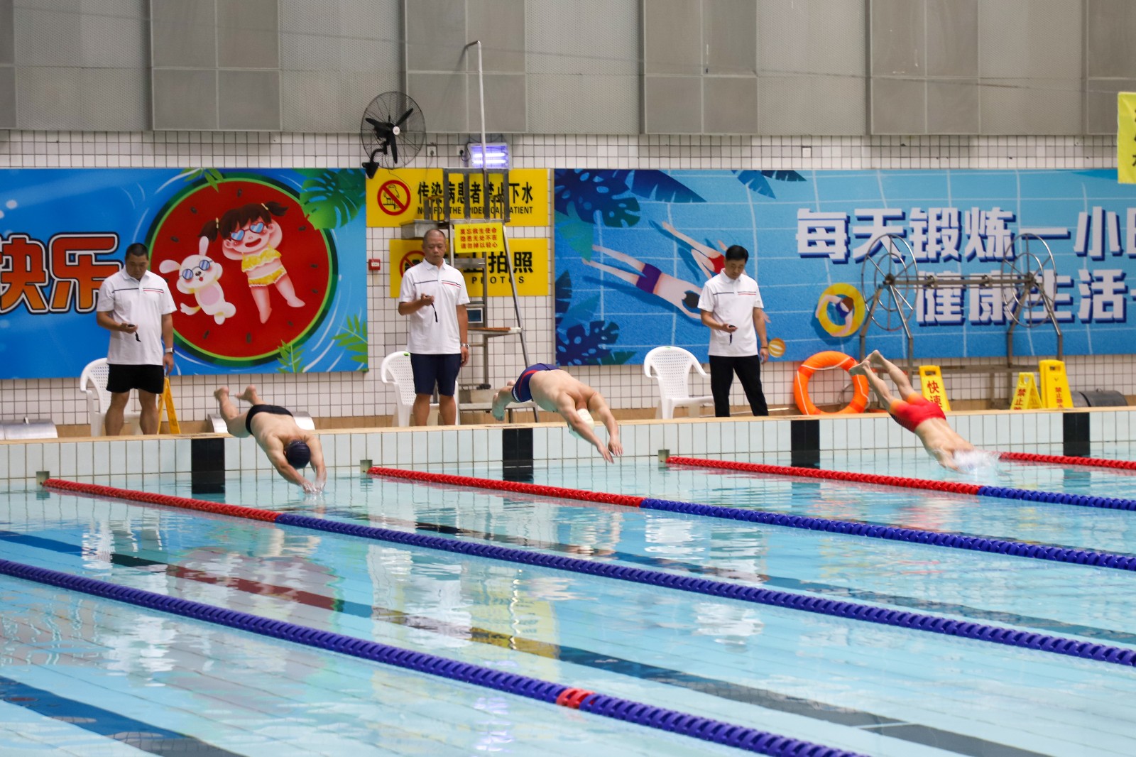 為強(qiáng)化游泳救生員隊伍的團(tuán)隊協(xié)作能力,此次比賽定為團(tuán)體賽制,設(shè)有100米假人障礙接力、水中赴救+心肺復(fù)蘇、50米速游三個項目,我中心游泳館共在崗救生員全部參賽參賽。經(jīng)過激烈的角逐,決出了團(tuán)體前3名。