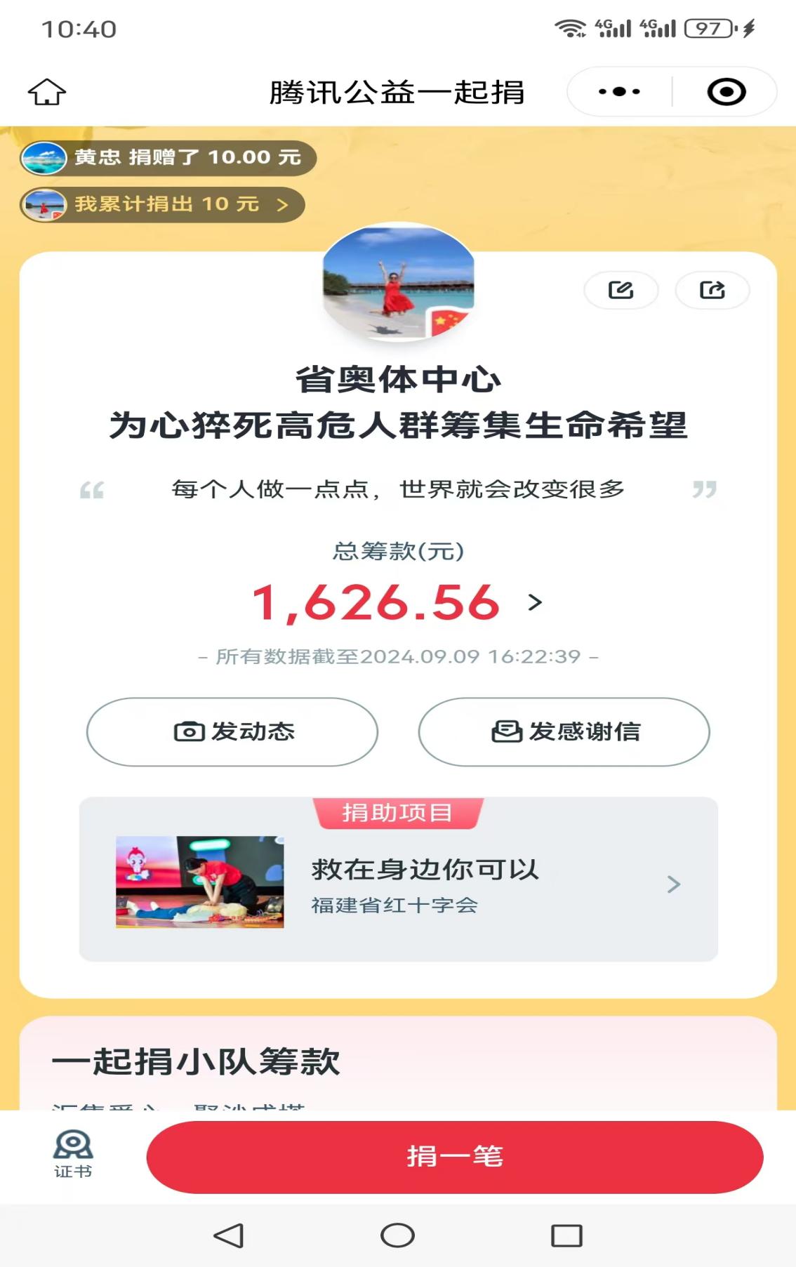 近日,省奧體中心響應(yīng)福建省紅十字會(huì)、福建省體育局號(hào)召,積極參與2024年“99公益日”活動(dòng),加入“救在身邊你可以”線(xiàn)上募捐項(xiàng)目。9月7日起,組織全體干部職工通過(guò)線(xiàn)上方式踴躍參與募捐。中心領(lǐng)導(dǎo)班子率先垂范,各部門(mén)積極響應(yīng),充分展現(xiàn)了單位上下對(duì)公益事業(yè)的熱忱。截至活動(dòng)結(jié)束,省奧體中心共募集善款1626.56元,彰顯了省直單位的文明形象和社會(huì)責(zé)任感。
