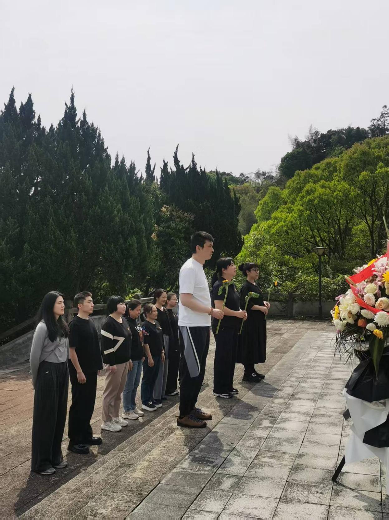 在蒼松翠柏的掩映中,革命烈士紀(jì)念碑巍然聳立,全體人員懷著無比崇敬的心情,肅立默哀、敬獻(xiàn)花籃,向長眠于此的烈士致以最深切的悼念和最崇高的敬意。