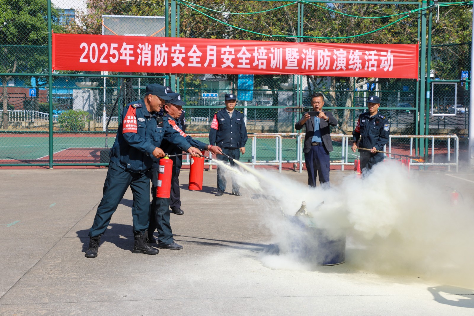 隨后,培訓(xùn)專家?guī)ьI(lǐng)大家進(jìn)行了應(yīng)急演練活動(dòng)。盧波警官逐一詳細(xì)介紹了各項(xiàng)反恐裝備的使用,并與安保人員一同模擬使用。在專業(yè)人士的監(jiān)督和指導(dǎo)下,中心干部職工積極參與滅火器的實(shí)操演練,對模擬火源進(jìn)行撲救,進(jìn)一步增強(qiáng)對消防器材使用的熟練度。