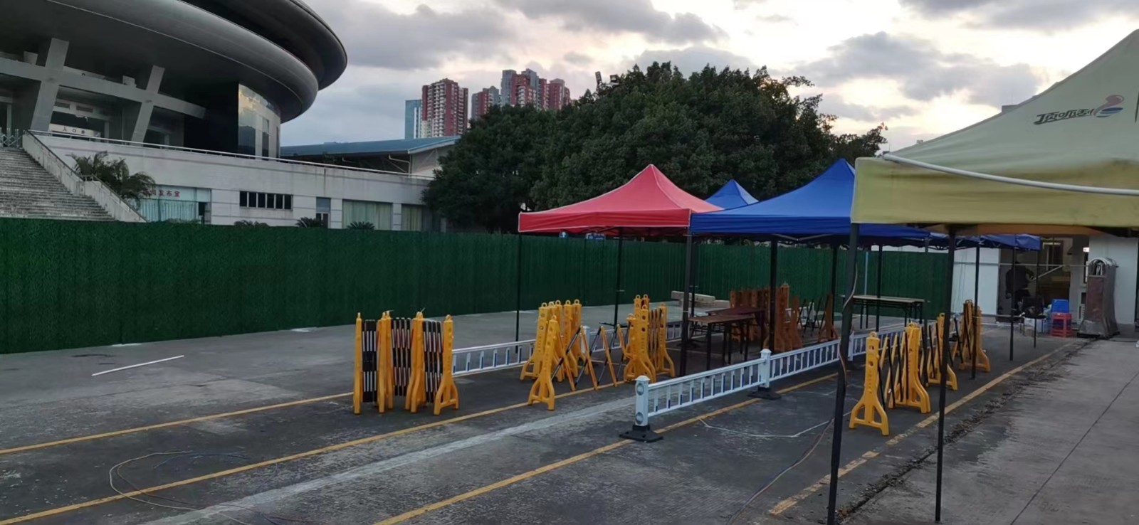 本輪疫情發(fā)生后,福州全市已開展了多輪的全員核酸檢測(cè),該站點(diǎn)工作壓力驟增,原有場(chǎng)地已無法滿足疫情防控工作的需要。疫情就是命令,目前正值福州新冠肺炎疫情防控的關(guān)鍵時(shí)期,為配合體育中心社區(qū)疫情防控工作,緩解“福建省奧體中心北二門”核酸檢測(cè)點(diǎn)空間有限的壓力,2022年10月29日,省奧體中心主動(dòng)作為、迅速行動(dòng),在中心北區(qū)騰出足夠空地,僅用5個(gè)小時(shí),就完成了隔離墻的修建工程,擴(kuò)大檢測(cè)區(qū)域面積近300平方米,為核酸檢測(cè)工作的安全有序提供了重要保障,助力福州市抗擊新冠肺炎疫情,堅(jiān)定戰(zhàn)“疫”必勝的信心,以必勝信念堅(jiān)決打贏疫情防控阻擊戰(zhàn)。