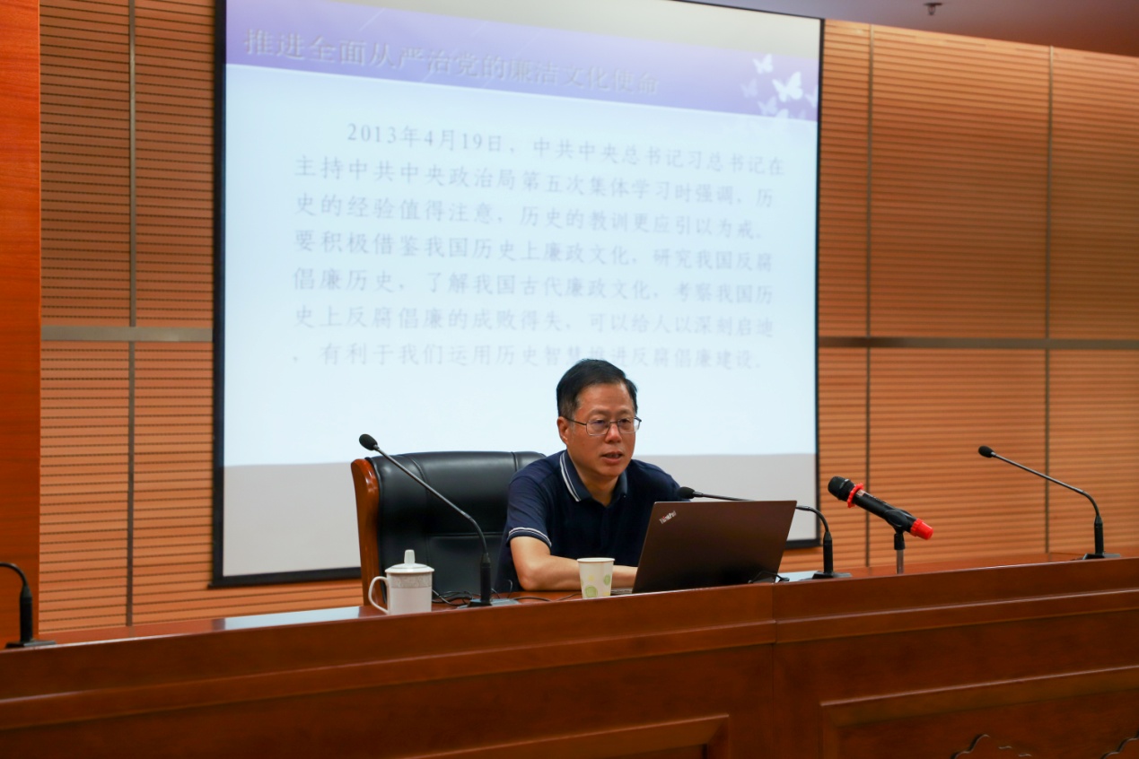 專題講座上,張利生同志以“推進(jìn)全面從嚴(yán)治黨的廉潔文化使命”為主題,從“為什么要建設(shè)廉潔文化”“建設(shè)什么樣的廉潔文化”“怎么樣建設(shè)廉潔文化”等方面為大家上了一節(jié)生動(dòng)且深刻的思想淬煉課。講座主題鮮明、內(nèi)涵豐富,重點(diǎn)突出,幫助大家深刻領(lǐng)悟習(xí)近平總書記關(guān)于新時(shí)代廉潔文化建設(shè)的深刻內(nèi)涵和重要意義,準(zhǔn)確理解一體推進(jìn)不敢腐、不能腐、不想腐的內(nèi)涵要求,從而堅(jiān)定秉公用權(quán)、廉潔從政的良好工作作風(fēng)。