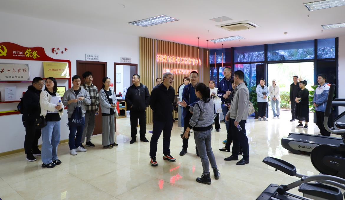 調(diào)研中,唐佑明副局長向調(diào)研組一行介紹了省奧體中心的發(fā)展歷程和總體概況,在王福平主任的引導(dǎo)下,調(diào)研組一行深入中心國民體質(zhì)測試站,了解體質(zhì)測試項目、開展情況和取得的成績,共話“體衛(wèi)融合”。調(diào)研組還實地走訪了中心總消監(jiān)控室和體育場、健身廣場、游泳館、體育館、網(wǎng)球館等,圍繞黨建引領(lǐng)體育事業(yè)和產(chǎn)業(yè)發(fā)展、體育場館總體開發(fā)利用情況、體育產(chǎn)業(yè)扶持政策等方面進行交流。